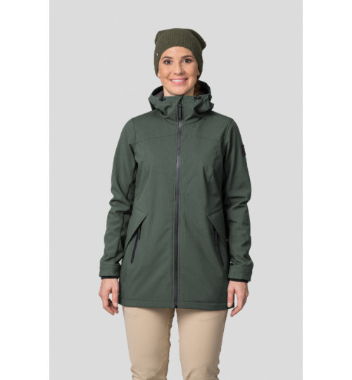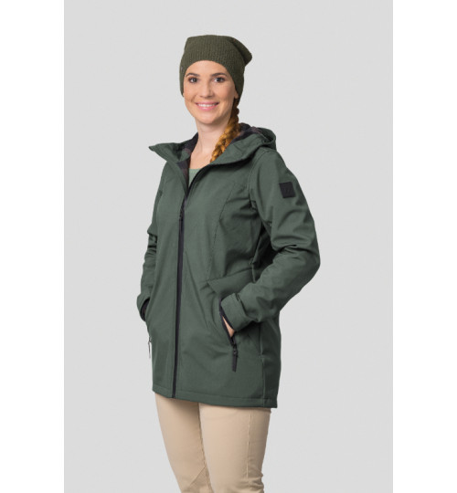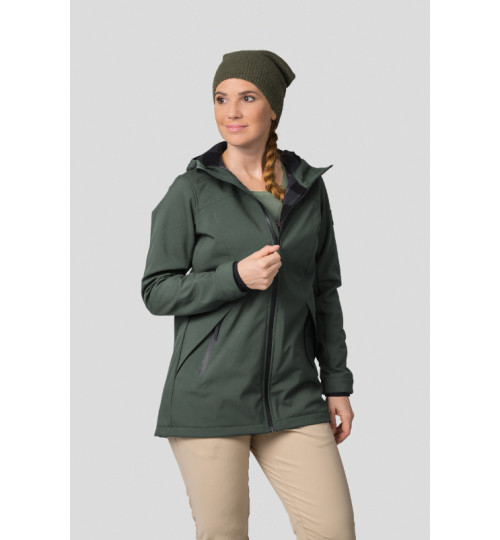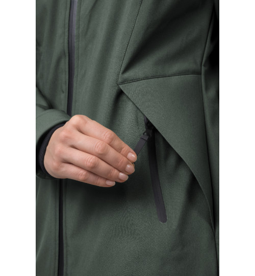 The Hannah Akame is a softshell leisure jacket that is also suitable for the city or easy trekking. It's made of the Softshell material with an 8000 membrane and a DWR finish. It is lightweight, windproof, and breathable and its Regular fit is suitable for most body shapes. The jacket has an adjustable hood, pre-shaped sleeves with cuffs and an adjustable bottom hem. Thanks to its length, it always keeps your back warm. The hand pockets have zips.