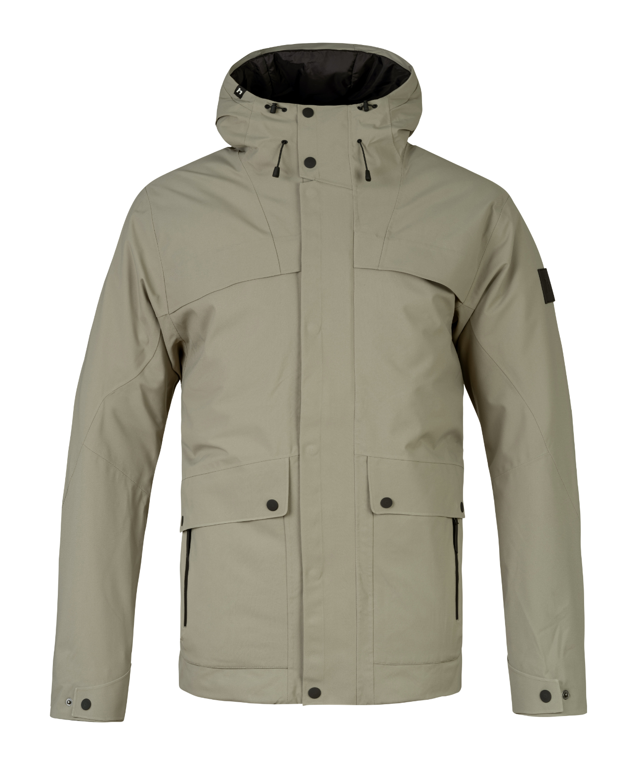 The winter parka coat resists rain, snow and wind thanks to the Resstex 5000 membrane and the upper water-repellent DWR treatment. Insulation is provided by high-quality Duratherm High Loft polyester fleece, which is light, fluffy, soft and has excellent thermal insulation properties. The special filling technology HL TECH Downlike ensures optimal spreading and fixation of the fill. The advantage is high loft, excellent thermoregulatory properties, and the jacket also feels and looks similar to a down jacket. The coat has two double gusset pockets covered with a printed tab and two pockets with a waterproof zip. The main plastic moulded zipper is covered by a flap, under which there is one zippered chest pocket. Thanks to this, it is very easily accessible even without the need to unzip the jacket. The sleeves are finished with an inner cuff and can be pulled up and secured with a press stud. Suitable for everyday wear.